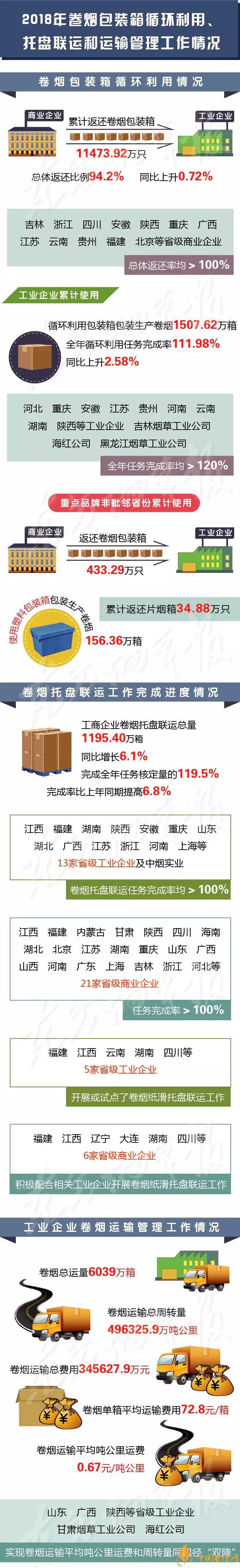 1月29日,國(guó)家煙草專(zhuān)賣(mài)局通報(bào)了2018年度卷煙包裝箱循環(huán)利用、卷煙托盤(pán)聯(lián)運(yùn)及卷煙運(yùn)輸管理工作情況(一圖速覽↓↓↓)。