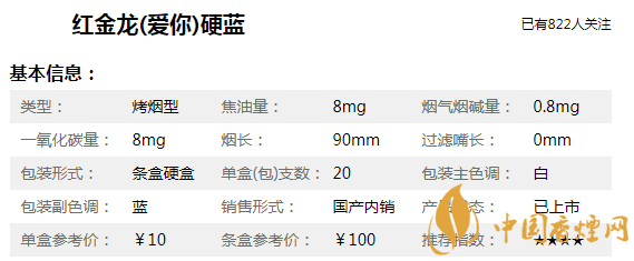 紅金龍(愛你)硬藍(lán)煙身長(zhǎng)90mm,焦油含量?jī)H為8mg/支,煙支修長(zhǎng)雅致、煙氣淡雅醇厚、口感醇和細(xì)膩。帶給品吸者新鮮有趣的吸食體驗(yàn)和適中的滿足感。吸食口感上,和南京炫赫門比較相似,低焦、低危害對(duì)身體危害也要低一些。只不過目前部分地區(qū)已經(jīng)買不到該款煙了,消費(fèi)者要注意甄別真假,以免上當(dāng)受騙。
