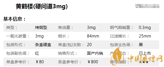 3、黃鶴樓(硬問道3mg) 84mm 硬盒 20 8mg ¥80