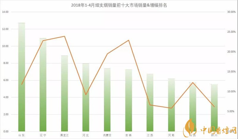 眾所周知近年來細支煙在柜內(nèi)可謂十分十分盛行!細支煙得到了消費者的廣泛接受,并以燎原之勢把外煙帶來的新鮮感迅速轉(zhuǎn)換為民族品牌的認同度。如今東三省細支煙再次脫銷,為了更好的了解,下面香煙網(wǎng)小編為大家整理介紹2018年1-4月細支煙銷量銷售額前十大市場排名。