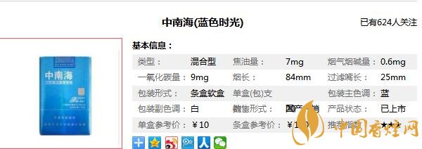 中南海藍色時光參數(shù)信息