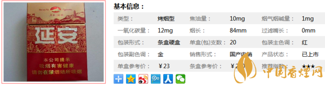 延安紅韻是款Ve爆珠香煙,味道偏淡,煙長84mm,焦油量10mg,煙堿量1mg,一氧化碳量12mg,吸味整體很清淡,入喉很綿柔,留在齒間的余香很贊。