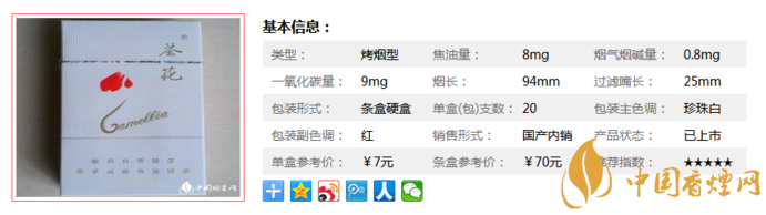 以上便是由香煙網(wǎng)小編為大家介紹的關(guān)于茶花細支香煙多少錢 茶花(94mm)香煙7元一包的相關(guān)信息,想要了解更多有關(guān)內(nèi)容請點擊:白盒茶花煙多少錢一包 茶花煙價格表和圖片