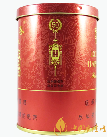 獨有的真空保存技術令卷煙的品質(zhì)得到完美的體現(xiàn)。 其外包裝采用鐳射轉移技術,高貴的罐裝禮品盒,體面而討彩。此煙包裝圖案如同其名,紅底金字,有雙喜有龍鳳,開罐聞味,一股清香之氣撲鼻而來。送禮,結婚送禮,好意頭。