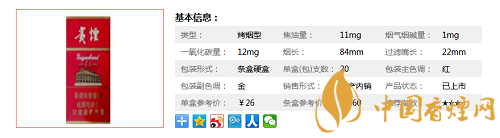 | 類型 :烤煙型 | 焦油量 :11mg | 煙氣煙堿量 :1mg | 一氧化碳量 :12mg |