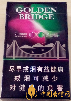 煙盒是黑色主調,而輔色大膽選用了難度最高的紅綠雙色。經(jīng)過設計人員的用心配置,紅綠雙色既能反襯出足夠的眼球沖擊力,又有和睦諧調的整體效果。正反兩面的主體構圖是與軟硬金橋、冰爆金橋一脈相承的金門大橋圖案。