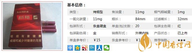 新款式的威斯包裝還是比較好看的,味道從以前的混合型改為現(xiàn)在的烤煙型,煙氣飽滿濃郁,但是沒什么香氣。但還是對的起這個(gè)價(jià)格的,口感還行,但是屬于小眾化香煙。經(jīng)香煙網(wǎng)小編市場調(diào)查威斯經(jīng)典售價(jià)為15元/包。