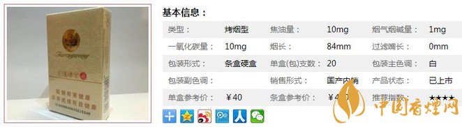 | 類(lèi)型 :烤煙型 | 焦油量 :10mg | 煙氣煙堿量 :1mg | 一氧化碳量 :10mg |