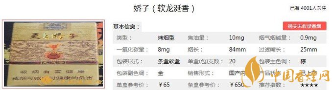 嬌子軟龍涎香口感醇和,煙氣飽滿香濃,香氣綿柔悠長,味道非常不錯的。煙是好煙,就是價格有點貴,不過也確實值得品嘗一番。經(jīng)香煙網(wǎng)小編市場調查嬌子軟龍涎香售價為65元/包。
