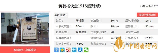以上便是由香煙網(wǎng)小編為大家介紹的關(guān)于黃鶴樓軟盒1916(爆珠版)多少錢一包 1916首開爆珠先河的相關(guān)信息,想要了解更多有關(guān)內(nèi)容請點擊:貴煙福多少錢一包 貴煙??诟屑皡?shù)介紹