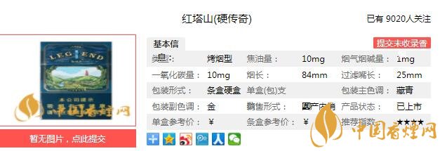 紅塔山硬傳奇煙支長84mm,過濾嘴長25mm,煙嘴上被墨綠色的細條環(huán)繞,里面寫著since1956,以及紅塔山的字樣和傳奇的印章,整體風(fēng)格與煙盒一致,還是比較和諧。下面我們一起來看紅塔山硬傳奇的參數(shù)信息:焦油量:10mg 煙堿量:1.0mg 一氧化碳量:10mg