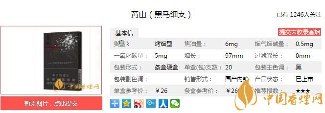 以上便是由香煙網(wǎng)小編為大家介紹的關(guān)于黃山黑馬細(xì)支多少錢一包 黃山最新細(xì)支香煙的相關(guān)信息,想要了解更多有關(guān)內(nèi)容請(qǐng)點(diǎn)擊:云煙軟珍紅鉆多少錢一包 云煙軟珍紅鉆口感分析