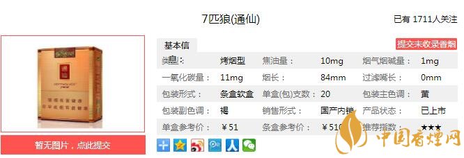 隨著高端人士對于卷煙吸食的安全、健康因素愈加關注,“七匹狼”秉承消費者利益至上,開創(chuàng)高端卷煙“全生態(tài)”體驗,確立了“煙香自然突出,煙氣醇和細膩,煙味細柔綿長”的高端品類風格特征,創(chuàng)建“生態(tài)綿柔香”高端卷煙全新品類。 經香煙網小編市場調查七匹狼通仙售價為51元/包。