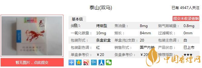 以上便是由香煙網(wǎng)小編為大家介紹的關(guān)于泰山雙馬煙價格 泰山雙馬8mg口感及參數(shù)分析的相關(guān)信息,想要了解更多有關(guān)內(nèi)容請點擊:泰山香緣口感怎么樣 沉香與煙草本香相結(jié)合