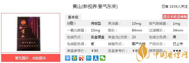 以上便是由香煙網(wǎng)小編為大家介紹的關(guān)于黃山新視界紫氣東來(lái)多少錢一包 黃山新視界口感分析的相關(guān)信息,想要了解更多有關(guān)內(nèi)容請(qǐng)點(diǎn)擊:古田紅軍灰多少錢一包 古田紅軍灰口感如何