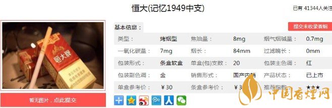 以上便是香煙網(wǎng)小編為大家介紹的關(guān)于恒大記憶1949原始香煙包裝,價(jià)格還是當(dāng)年的30元一包!的相關(guān)信息,大家看完之后是不是對于這款香煙更加了解呢,想要了解更多內(nèi)容歡迎點(diǎn)擊:恒大煙魁1903口感測評 百元大佬煙色香味俱全