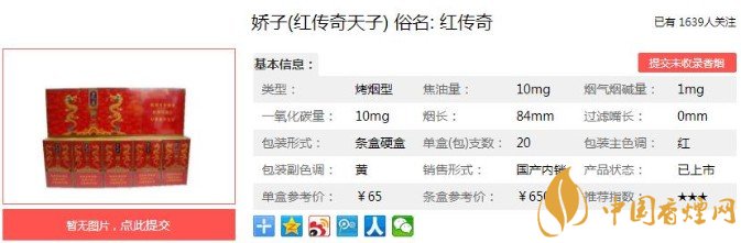 以上便是香煙網(wǎng)小編為大家介紹的關(guān)于香煙中的完美形象,嬌子紅傳奇天子的價格及口感分析!的相關(guān)信息,看完之后大家是不是對于嬌子(紅傳奇天子)的相關(guān)信息更加了解呢。大家還想查詢更多的相關(guān)內(nèi)容歡迎點擊:嬌子寬窄如意價格及口感分析,黑科技滿滿的一款香煙!