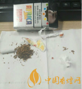 這款煙的外包裝除了有惡心的忠告圖意外,還是比較漂亮的。煙盒下方標(biāo)有“AFRICARANDOMFIVE”煙盒上方是忠告圖吸煙有害健康的一些標(biāo)語。