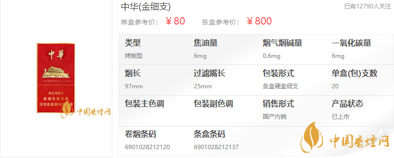 中華(金細支)是中華香煙系列中唯一的一款細支香煙,從外觀到內(nèi)在,整體都散發(fā)著一種卓爾不群的氣質(zhì),這款中華細支香煙上市后,也取得了很大的成功,同時也開創(chuàng)了高端中支香煙的潮流。有著遠超于同價位卷煙的品質(zhì),被譽為是“細煙中的極品”。參考價:800元/條。
