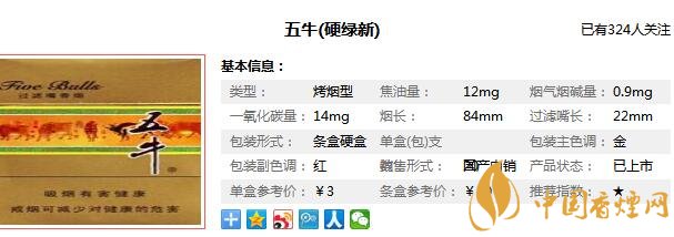 以上內(nèi)容是由香煙網(wǎng)小編為大家收集以及整理的關(guān)于,五牛硬綠新多少錢一包以及成都五牛香煙圖片和價格相關(guān)的信息,想要了解更多相關(guān)信息詳情請點擊:黃金龍香煙圖片價格大全。