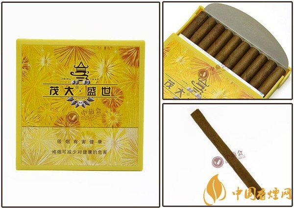 茂大盛世雪茄是迷你型小雪茄煙,也被稱為茂大盛世迷你雪茄。煙身飽滿,結(jié)構(gòu)精良,短小精悍的茄身便于撐控,也便于攜帶,口感醇和飄香,令人特別喜歡。在50元以內(nèi)茂大雪茄型香煙價格表圖中,它很有代表性。每每談起茂大雪茄型香煙有哪些好抽,就會很自然的想到它,它好抽,性價比還不錯,值得品鑒。