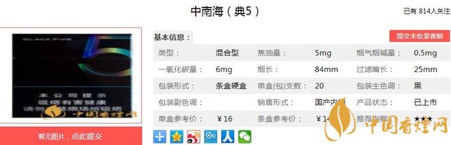 中南海卷煙最早為北京卷煙廠生產(chǎn)的特供煙,1976年中對外試銷,由此進入市場。1983年新混合型中南海卷煙誕生,1994年低焦油中南海成功研制,1999年后至今,中南海5mg、中南海8mg、中南海金8mg、中南海典5等產(chǎn)品問世,形成了混合型中南海系列產(chǎn)品。下面就由香煙網(wǎng)小編帶大家一起來了解中南海典5的相關信息。