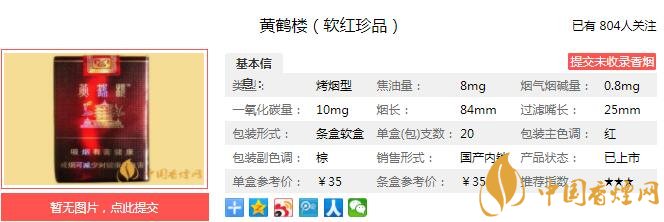 黃鶴樓的煙大部分還是很有名氣的,什么1916、峽谷柔情、雅韻這些系列大家口熟能祥。黃鶴樓的煙在煙民中口碑還是不錯(cuò)的。作為樓煙“珍品”系列,黃鶴樓(軟紅珍品)可以在黃鶴樓眾多香煙中被冠以珍品之名,可見(jiàn)也是不俗。下面香煙網(wǎng)小編就給大家介紹下黃鶴樓(軟紅珍品)的參數(shù)和口感。