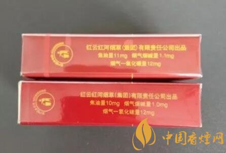 翻轉至煙盒的左側,都是生產廠商的名稱和這款香煙的理化含量標識。廠家同為“紅云紅河煙草(集團)有限責任公司”。