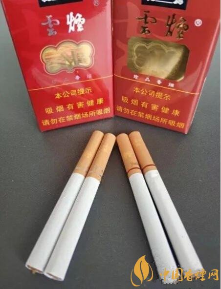 煙嘴上的文字皆一樣,從上往下是“雲(yún)煙”兩個字,成階梯形排列。在煙嘴表面的下部,各有一道圓箍,顏色與煙盒正面的logo的顏色相呼應。
