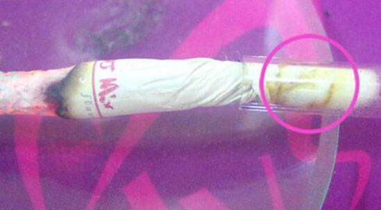 1,首先我們利用吸氣裝置將煙氣的粒相成分(包括焦油、尼古丁、水)收集于棉花團上,此時棉花局部就變黃變褐了,那就是收集到的總粒相物(見下圖1);