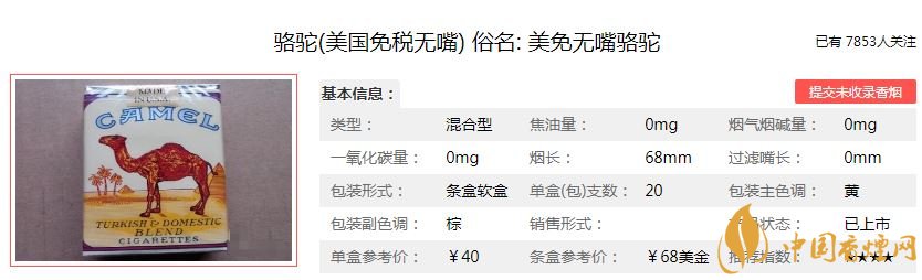 煙民們應(yīng)該都知道,無嘴香煙對(duì)我們的身體傷害很大,從80年代后期,過濾嘴香煙出現(xiàn)后,無嘴香煙便慢慢被淘汰了,但是對(duì)于一些老煙民來說,無嘴香煙的口感是經(jīng)典,始終無法超越。今天小編就為大家介紹一款無嘴香煙——無嘴駱駝(美國(guó)免稅)。下面讓我們一起去看看這款無嘴駱駝的價(jià)格以及抽過的煙民的品吸點(diǎn)評(píng)。