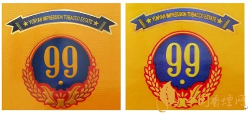真品卷煙:1.商標(biāo)LOGO稻穗圖案凸起,整體立體、飽滿,大豐收。2.99數(shù)字筆畫圓潤、飽滿,下面圓點(diǎn)尤為突出。3. 藍(lán)色底紋顏色重,邊緣向中間色彩過渡自然。4.商標(biāo)紙流水紋路清晰可見。