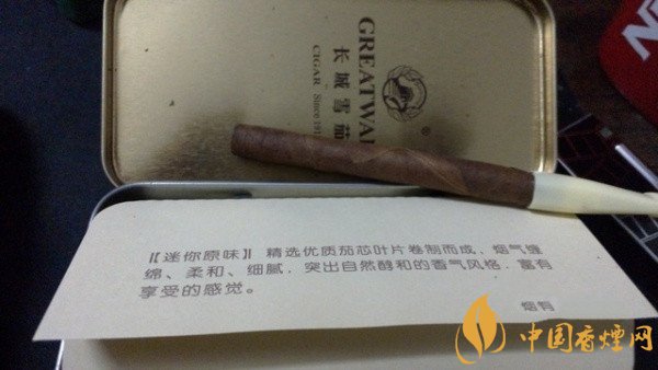 關(guān)于這款長城雪茄煙突出了其煙草本香,雪茄本香純正,入喉通暢,煙氣纏綿,口味自然而醇和。感覺是最自然的煙草本香,吸食者可放松心情享受,別有一番風(fēng)味,難怪上市以來憑借自己小巧的外觀會得到那么多茄友的喜愛。