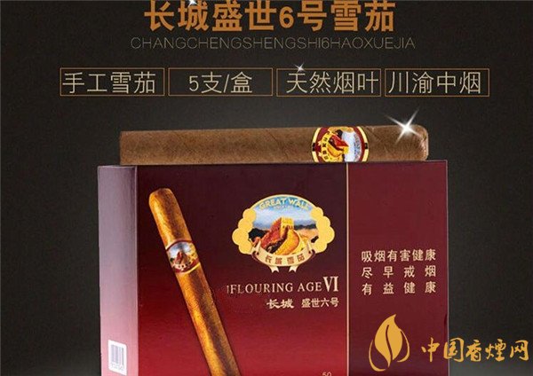 長(zhǎng)城雪茄煙盛世6號(hào)雪茄外包裝主色系為艷麗的酒紅色,輔助色系為金色,整體包裝看上支簡(jiǎn)約透露著喜慶與貴氣。肥沃的四川盆地孕育了中國(guó)最好的雪茄煙葉,而這款長(zhǎng)城雪茄煙就是采用中國(guó)最優(yōu)質(zhì)的煙葉精心卷制而成。入喉柔和清爽,香味純正。下面就從以下幾個(gè)方面來(lái)分析這款長(zhǎng)城雪茄煙怎么樣。