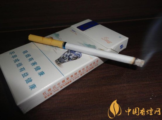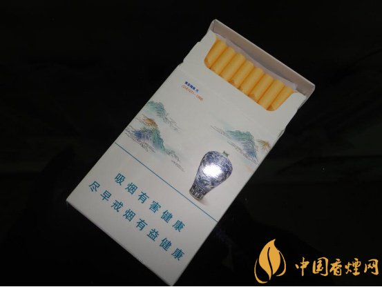 煙支纖細,結構漂亮,嘴部幽藍色的古瓷二字和淡淡的山水圖案交相輝映,濾嘴剪切整齊,粘接平整緊致。煙支填充緊密,手感軟硬適中。從底部抽出些煙絲切片均勻油潤有光澤。煙質的品質還是挺不錯的。
