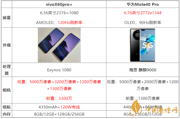 vivoX60pro+和華為Mate40 Pro:兩款手機(jī)的電池容量差不多,但vivoX60pro+ 的120W快充速率更強(qiáng)大。