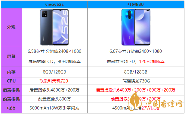 最近vivo發(fā)布了vivoy52s這款手機(jī),如果和極具性價(jià)比的紅米k30來(lái)比的話,哪一款手機(jī)更值得入手呢,目前這兩款手機(jī)在各大平臺(tái)均有銷售,下面香煙網(wǎng)小編就為大家?guī)?lái)vivoy52s和紅米k30?的詳細(xì)對(duì)比,感興趣的用戶一起來(lái)看看吧。