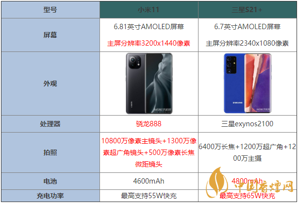 近期,小米11已經(jīng)發(fā)布,三星S21+也即將迎來發(fā)布,那么小米11和三星S21+誰更好一些,小米11和三星S21+哪款手機更值得入手?下面香煙網(wǎng)小編就為大家?guī)硇∶?1和三星S21+詳細(xì)參數(shù)對比,感興趣的朋友一起來看看吧