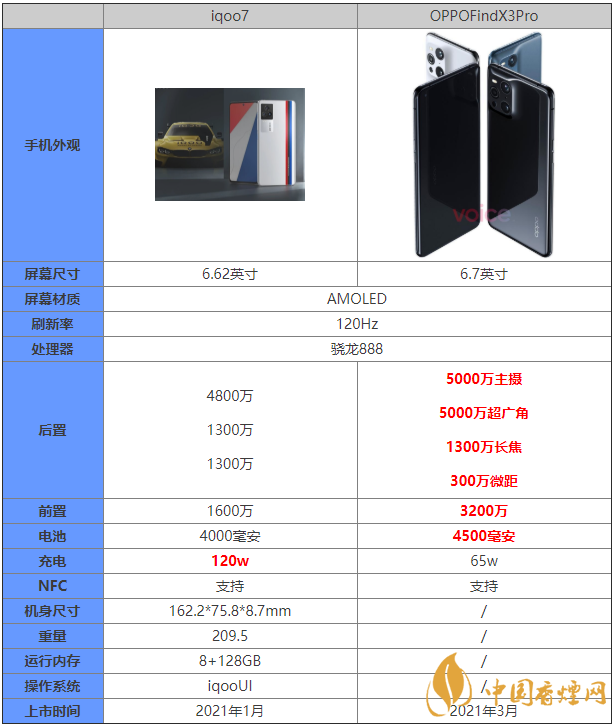 OPPOFindX3Pro和iqoo7都是搭載的驍龍888處理器,那么這兩款手機(jī)的區(qū)別是什么?哪款手機(jī)的性價(jià)比更高?哪款手機(jī)更值得入手?下面香煙網(wǎng)小編為大家?guī)鞳PPOFindX3Pro和iqoo7參數(shù)對(duì)比,快來看看吧。