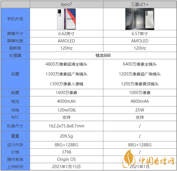 最新發(fā)布的iqoo7手機(jī),相信許多小伙伴都十分關(guān)注,那么對比三星s21+這兩款手機(jī)的區(qū)別是什么?哪款手機(jī)更好?哪款手機(jī)更值得入手?下面香煙網(wǎng)小編為大家?guī)碜钚碌膇qoo7和三星s21+參數(shù)對比,快來看看吧。