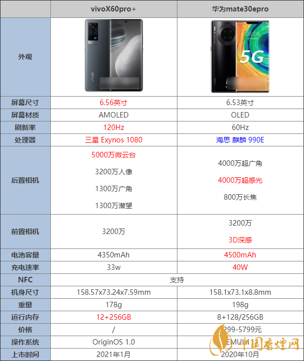 vivox60pro+和華為mate30epro有哪些區(qū)別?肯定會有朋友在糾結(jié),vivox60pro+和華為mate30epro這兩款手機選哪個,哪個性價比更高更值得購買,接下來香煙網(wǎng)小編就帶來了參數(shù)對比,一起來看看有什么區(qū)別吧!