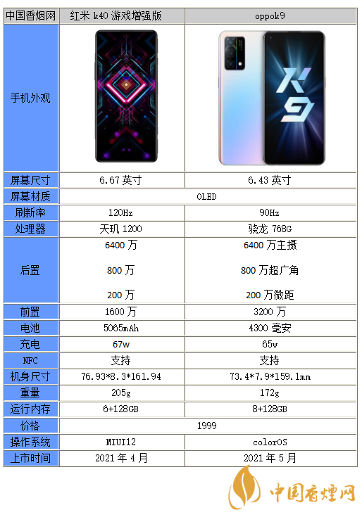 以上就是小編收集到的oppok9和紅米k40游戲增強(qiáng)版買哪個(gè)-參數(shù)性能對(duì)比的相關(guān)內(nèi)容,以上內(nèi)容均來(lái)源于網(wǎng)絡(luò),僅供參考,一切以實(shí)際為準(zhǔn),更多最新數(shù)碼資訊請(qǐng)關(guān)注香煙網(wǎng)。