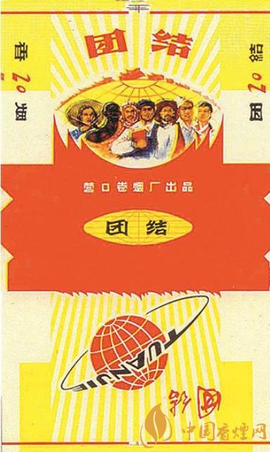 上世紀(jì)60年代,團(tuán)結(jié)被賦予了全新的含義。如國(guó)營(yíng)天津卷煙廠(chǎng)出品的“團(tuán)結(jié)”煙標(biāo),主版于蒼勁有力的“團(tuán)結(jié)”二字下方,描繪的是代表亞、非、拉人民的三個(gè)人物每人手持一本有著典型時(shí)代特征的“紅寶書(shū)”,齊心協(xié)力共舉一個(gè)火炬的場(chǎng)景,副版圖案是一個(gè)正在熊熊燃燒的大火炬。營(yíng)口卷煙廠(chǎng)則出品了多種版別的“團(tuán)結(jié)”煙標(biāo),其中一種的主版于插有無(wú)數(shù)面紅旗的地球映襯下,展現(xiàn)出世界上不同膚色、不同民族的人們走到一起的畫(huà)面;副版是“團(tuán)結(jié)”的漢語(yǔ)拼音“TUANJIE”字樣環(huán)繞地球的畫(huà)面,反映了世界各國(guó)人民的大團(tuán)結(jié)。