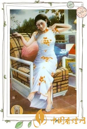 欽差牌香煙。一身印花旗袍,一張沙發(fā),東西方文化相融,一點(diǎn)也不覺得突兀。