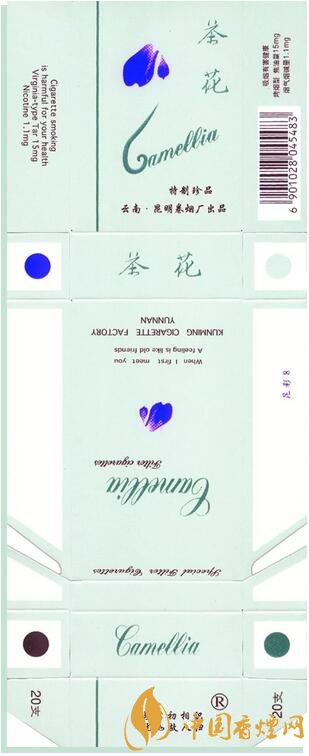 1998年昆明卷煙廠出品。“茶花”牌卷煙創(chuàng)牌于1975年,茶花是云南特有的名花,也是昆明市的市花。1975年昆明卷煙廠用英國引進的全國煙草行業(yè)第一臺過濾嘴卷煙設備,生產(chǎn)云南第1包過濾嘴香。1976年,首批銷往香港,開創(chuàng)中國過濾嘴卷煙出口創(chuàng)匯先河。