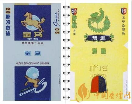 1979年,昆明卷煙廠出品。金馬、碧雞圖案為昆明市市徽,60年一遇金碧交輝昆明天象奇觀。金馬碧雞坊,現(xiàn)在依然是昆明市的商業(yè)中心、昆明地標性建筑。