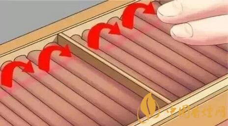 將雪茄放在濕度稍大如地下室之類的地方約一星期(如果雪茄特別干燥,可適當(dāng)延長(zhǎng)時(shí)間)。而后將雪茄放置在濕度為70%的保溫盒內(nèi),每隔2-3天翻轉(zhuǎn)四分之一(90度),直到全部旋轉(zhuǎn)兩次。