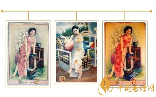 民國(guó)時(shí)期的香煙廣告,“美女”成為廣告畫中的絕對(duì)主角,使得廣告散發(fā)出誘人的女性魅力,以迎合和吸引大眾的注意力。而在當(dāng)時(shí)紅極一時(shí)的哈德門香煙,全國(guó)各大中城市的巨幅廣告牌比比皆是,觸目可及。為了促銷增收,除大張旗鼓地推出各類廣告外,還在每盒煙中配有畫片一枚,供欣賞收藏。畫面皆為摩登美女,印刷精美,色彩靚麗。畫片背面亦印有廣告詞“哈德門香煙人人愛吸”。據(jù)查,美女共有百名,這些活潑自信,燙發(fā),穿高跟鞋,旗袍高開叉的“香煙美女”,服飾發(fā)型和神態(tài)各有千秋,情態(tài)紛呈,不管是讀書、梳妝,還是玩樂,無一不讓人感受到美感帶來的視覺沖擊。一枚擁有,即思百枚。