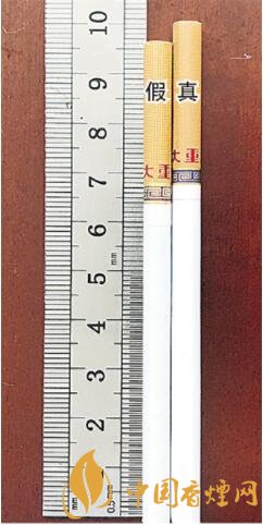 真煙煙支長度比假煙煙支長度長。