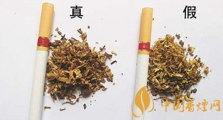 煙絲差異對比:真煙煙絲切絲寬度均勻,煙絲疏松,光澤油潤性好,呈檸檬黃色,含碎末少;假煙煙絲制絲工藝粗糙,色澤發(fā)暗無光澤,含碎末較多。